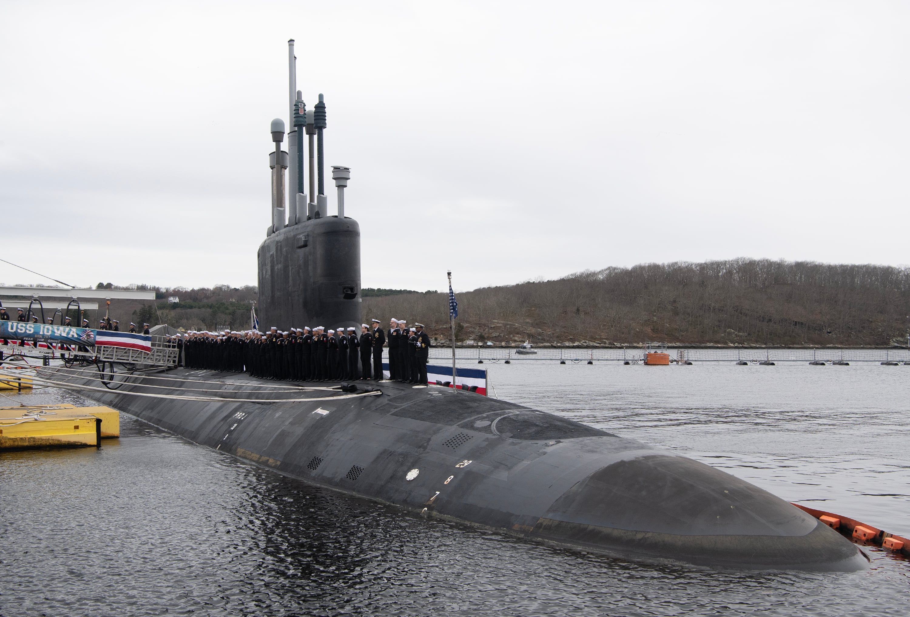 Maintainers for Virginia-class submarines, like the USS Iowa, pictured here, say they were forced to cannibalize parts from other submarines because of contract issues with vendors. (John Narewski/U.S. Navy)