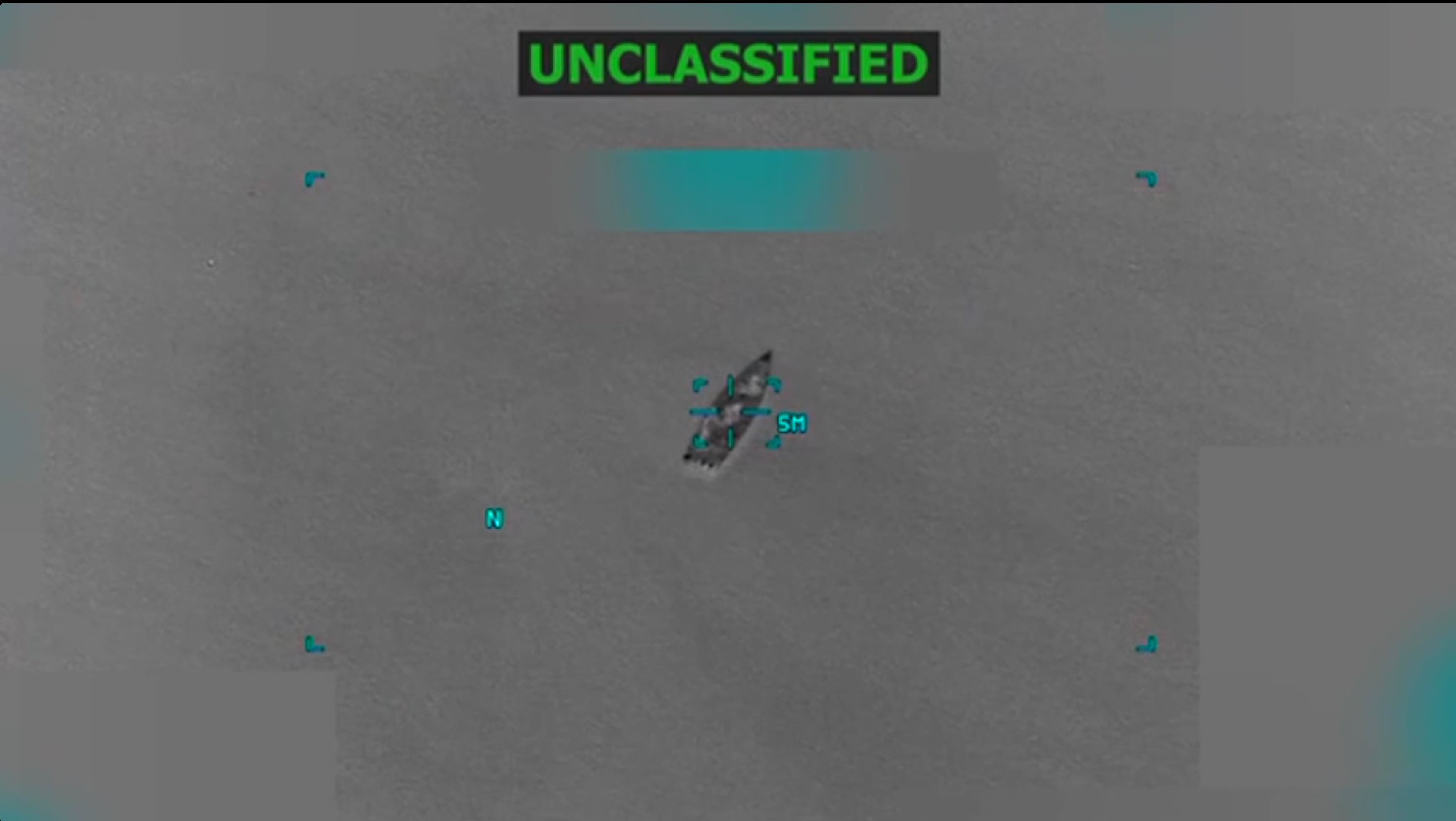 A screen shot of a boat off the coast of Venezuela prior to the U.S. military striking the vessel.